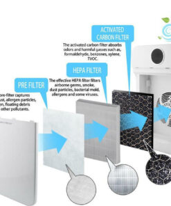 - Φίλτρο 3 σταδίων: προ-φίλτρο, φίλτρο υψηλής απόδοσης HEPA & φίλτρο ενεργού άνθρακα