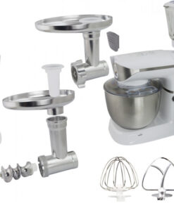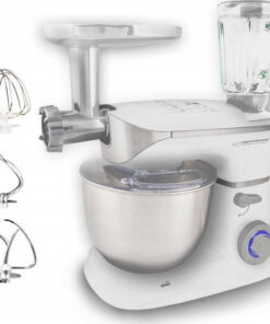 Η κουζινομηχανή διαθέτει ειδικό εξάρτημα με το οποίο μπορείτε να κόψετε εύκολα κιμά, καθώς και γυάλινο μπλέντερ 6 λεπίδες και χωρητικότητα 1.5 Lt, για να προετοιμάσετε εύκολα και γρήγορα χυμούς της αρεσκείας σας.