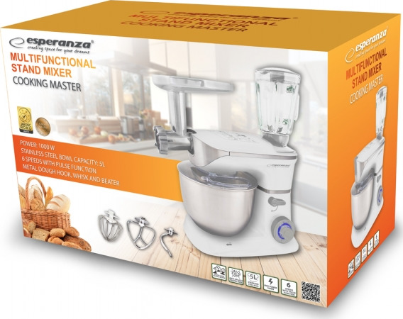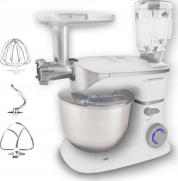 Η κουζινομηχανή, από την εταιρία Esperanza, είναι ένα ευέλικτο πολυμηχάνημα 3 σε 1 με ισχύ 1000 W, που σας επιτρέπει να χτυπάτε, ανακατεύετε, ζυμώνετε σε πολύ μικρό χρονικό διάστημα.