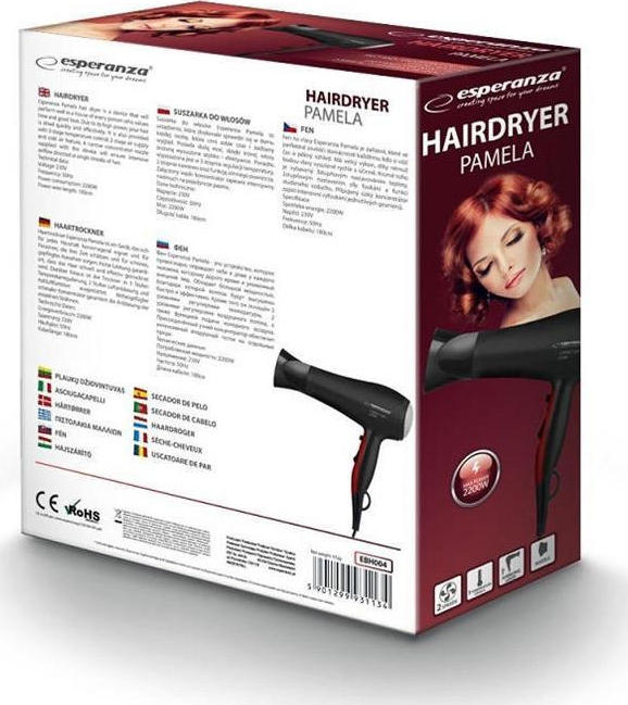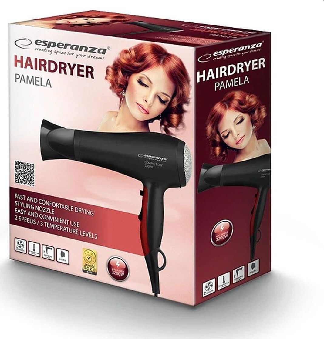 Το πιστολάκι μαλλιών, από την Esperanza, αποτελεί το απαραίτητο αξεσουάρ που κάθε γυναίκα πρέπει να διαθέτει, για τη σωστή περιποίηση των μαλλιών της και για εντυπωσιακές εμφανίσεις.Με τη δυνατή ισχύ των 2200 W, που διαθέτει το πιστολάκι, τα μαλλιά σας στεγνώνουν γρήγορα και αποτελεσματικά. Με 2 ταχύτητες αέρα και 3 ρυθμίσεις θερμοκρασίας (ζέστης), μπορείτε να ρυθμίσετε τη ροή και τη θερμότητα του αέρα, ανάλογα με το στιλιστικό αποτέλεσμα που θέλετε να δώσετε στα μαλλιά σας. Επίσης, η λειτουργία ψυχρού αέρα που διαθέτει το πιστολάκι, θα σας βοηθήσει να σταθεροποιήσετε το στιλ σας για εκθαμβωτικά αποτελέσματα.Στο πιστολάκι μαλλιών επίσης περιλαμβάνεται και ένα στενό στόμιο, κατάλληλο για κοντά ή μεσαίου μήκους μαλλιά, που θα σας βοηθήσει να κατευθύνετε τον αέρα σε μια συγκεκριμένη περιοχή του κεφαλιού. Εύκολο και βολικό στη χρήση, θα σας καταπλήξει με τις δυνατότητές του και θα αποτελέσει τον σύμμαχό σας στην περιποίηση των μαλλιών σας.