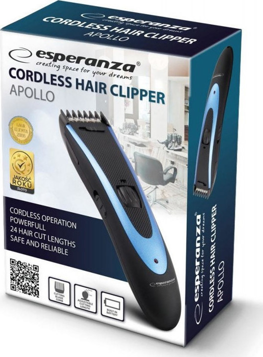 Η κουρευτική μηχανή Apollo, από την Esperanza, είναι εξοπλισμένη με ένα κουμπί που επιτρέπει να ρυθμίσει έως και 24 διαφορετικά μήκη κοπής. Τα μαλλιά μπορούν να κοπούν μεταξύ 1,5 mm και 24 mm για να εξασφαλίσουν κομψότητα με ακρίβεια.