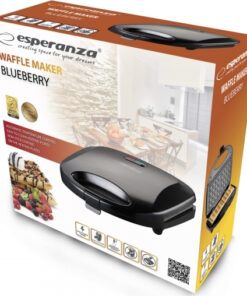 Η βαφλιέρα Blueberry, από την εταιρία Esperanza, έχει αντικολλητικές θερμαντικές πλάκες με γρήγορη θέρμανση, δίνοντάς τη δυνατότητα να προετοιμάσετε 2 βάφλες μέσα σε λίγα λεπτά. Διαθέτει αυτόματο έλεγχο της θερμοκρασίας, θερμομονωτική λαβή, προστασία από την υπερθέρμανση και αντιολισθητικά πόδια.