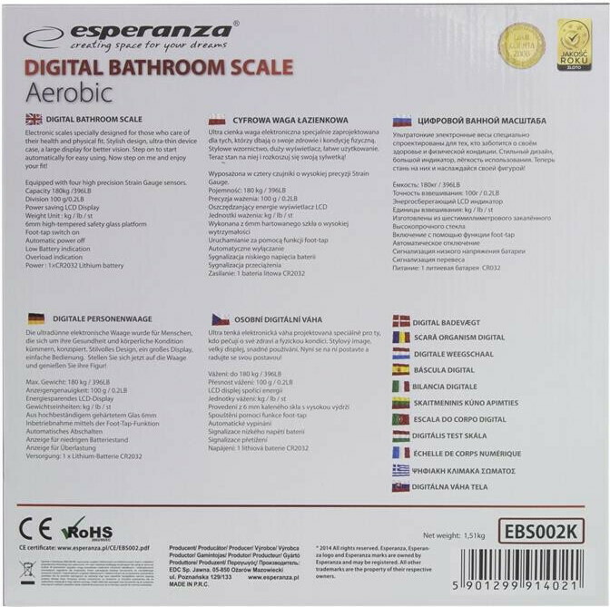 Η Esperanza EBS002K είναι μια ψηφιακή ζυγαριά με αισθητήρες με μεγάλη ακρίβεια