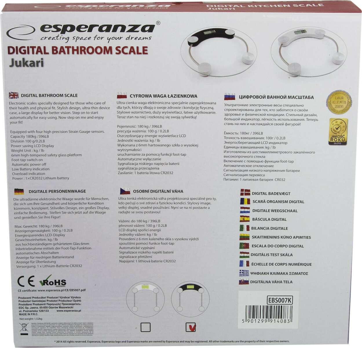 Ζυγαριά Μπάνιου ESPERANZA BATHROOM SCALE JUKARI