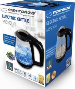 Βραστήρας από γυαλί, ασύρματος ηλεκτρικός με LED οπισθοφωτισμό κατά τη διάρκεια του βρασμού του νερού. Μοναδικός, διαχρονικός σχεδιασμός και όμορφη μπλε φωτεινότητα του βραζόμενου νερού, κατάλληλος για κάθε εσωτερικό χώρο και κουζίνα.