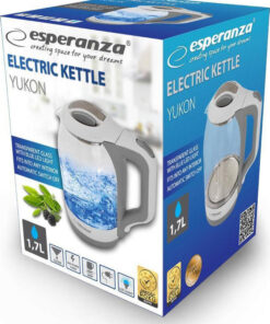 Βραστήρας από γυαλί, ασύρματος ηλεκτρικός με LED οπισθοφωτισμό κατά τη διάρκεια βρασμού του νερού. Μοναδικός, διαχρονικός σχεδιασμός και όμορφη μπλε λάμψη του βρασμένου νερού που ταιριάζει σε κάθε εσωτερικό χώρο και κουζίνα.