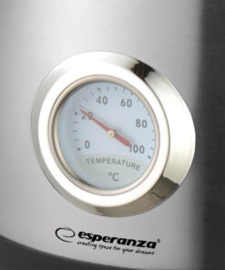Ο βραστήρας, από την εταιρία Esperanza, είναι κατασκευασμένος από ανοξείδωτο ατσάλι υψηλής ποιότητας. Εξοπλισμένος με ενσωματωμένο θερμαντικό στοιχείο και μη θερμαινόμενη λαβή, για ευκολία και υψηλή άνεση στη χρήση. Έχει χωρητικότητα 1.7 Lt, ενσωματωμένο θερμόμετρο, αυτόματο κλείσιμο μετά τον βρασμό του νερού και προστασία από το βράσιμο χωρίς νερό.