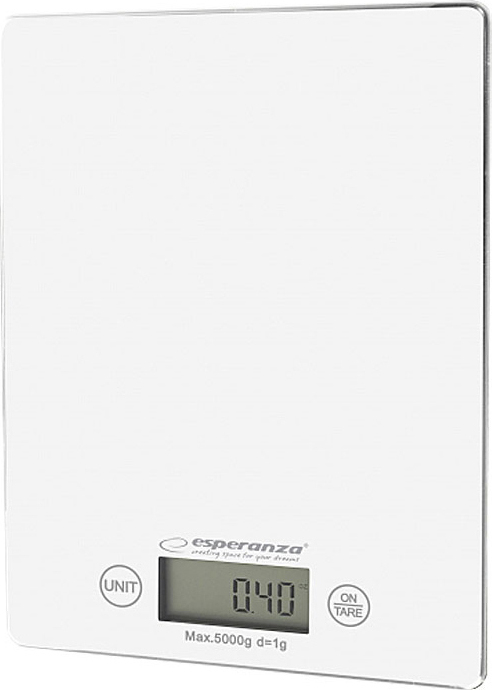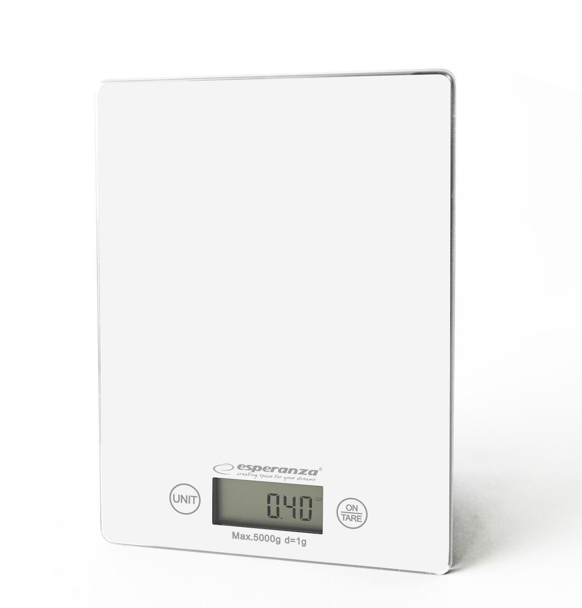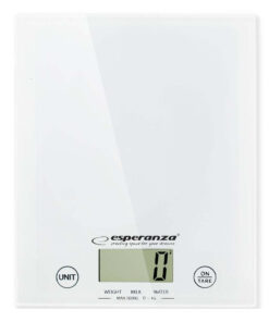 Η ζυγαρία της Esperanza είναι κατάλληλη για την κουζίνα. Το μικρό της μέγεθος είναι ιδανικό για εύκολη αποθήκευση. Είναι κατασκευασμένη από γυαλί σε μοντέρνο design. Διαθέτει ψηφιακό κέντρο ελέγχου και μπορεί να ζυγίσει εως 5kg. Είναι κατάλληλο για τη ζύγιση όλων των ξηρών και υγρών τροφίμων.