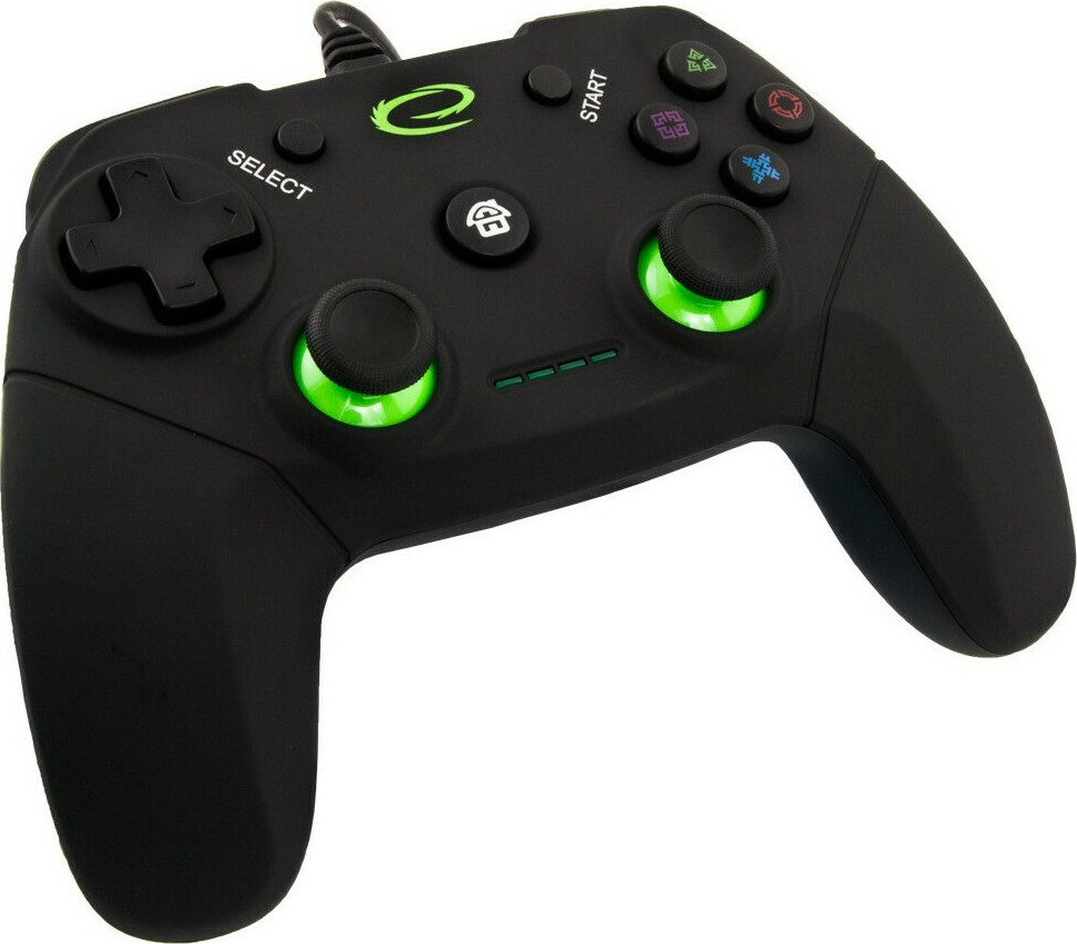 Ο εργονομικός σχεδιασμός διευκολύνει τη λαβή και δεν προκαλεί κόπωση κατά τη διάρκεια του παιχνιδιού. 8-κατευθύνσεων D-pad για εύκολη πρόσβαση στις περισσότερες λειτουργίες του παιχνιδιού. Οι δονητικοί κινητήρες παράγουν επιπρόσθετα εφέ.