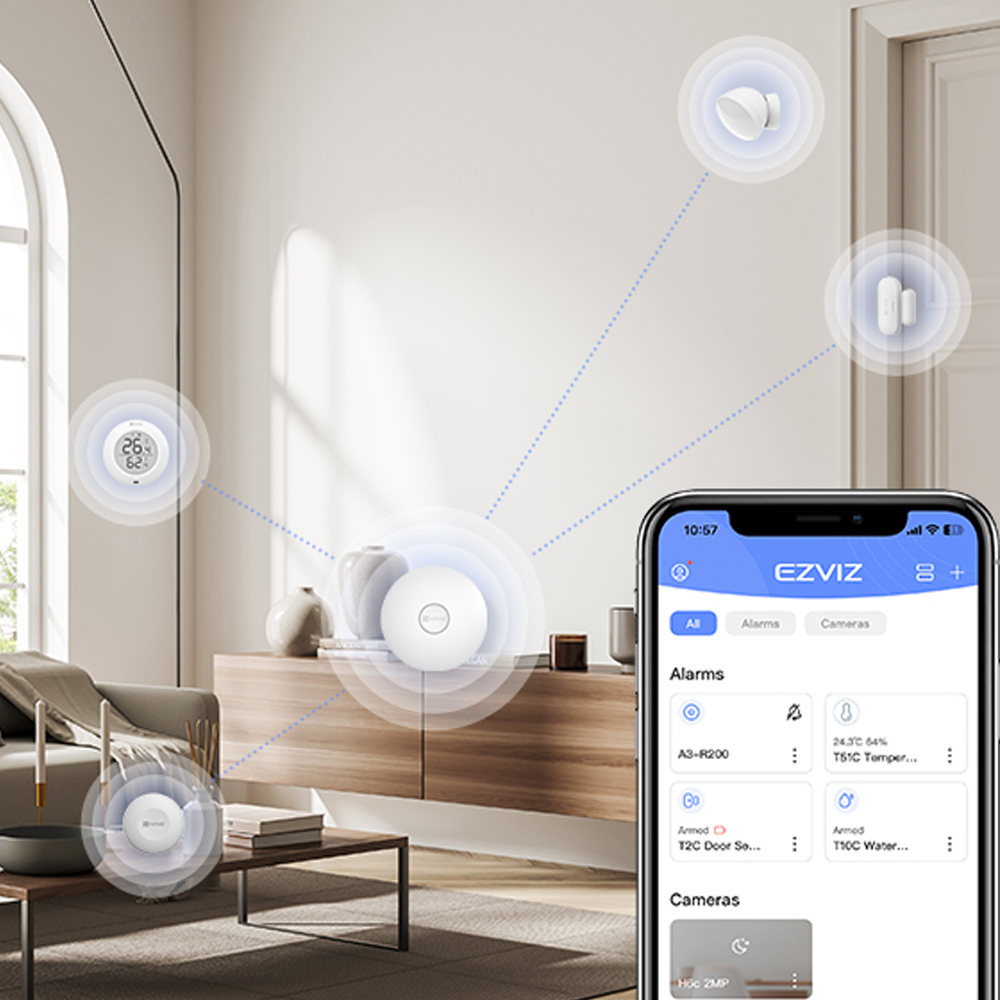 Με το A3, μπορείτε να επεκτείνετε το σύστημα ασφαλείας σας προσθέτοντας έως και 64 συμβατές συσκευές. Ο συνδεδεμένος αισθητήρας μπορεί επίσης να συνδεθεί με τις κάμερες EZVIZ για ενισχυμένη προστασία. Χρησιμοποιώντας μια κάρτα microSD ή εγγραφόμενοι στην υπηρεσία EZVIZ CloudPlay, μπορείτε να ρυθμίσετε την συνδεδεμένη κάμερα να ξεκινά αυτόματη εγγραφή για 5 δευτερόλεπτα κάθε φορά που ο αισθητήρας ανιχνεύει οποιαδήποτε δραστηριότητα.