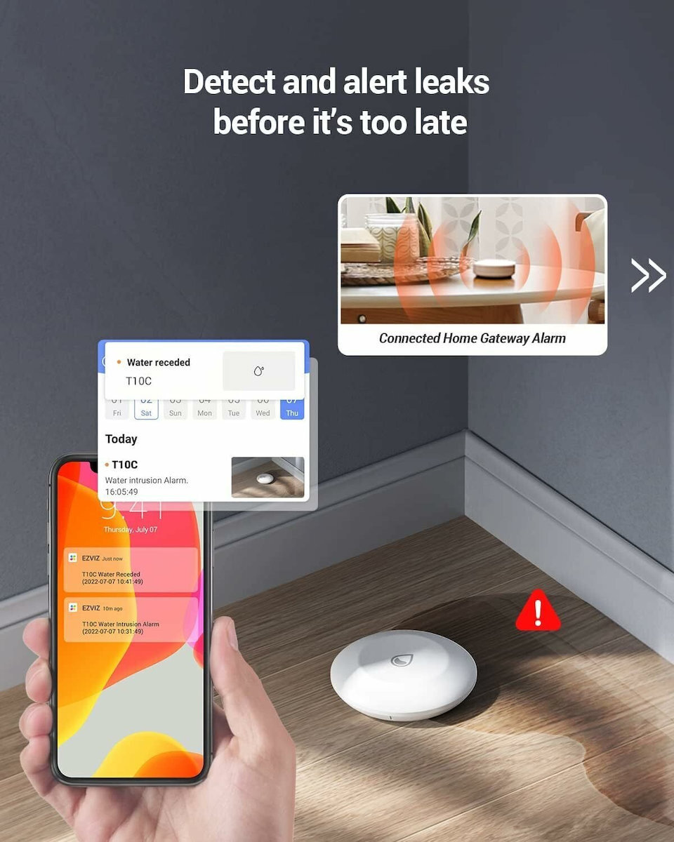 Χρησιμοποιήστε αυτόν τον έξυπνο ανιχνευτή για να προστατεύσετε το σπίτι σας σε περίπτωση διαρροής νερού. Μικρό σε μέγεθος και εξαιρετικά εύκολο στη χρήση, το T10C μπορεί να τοποθετηθεί σχεδόν οπουδήποτε κοντά σε σωλήνα νερού, νεροχύτη ή τουαλέτα.
