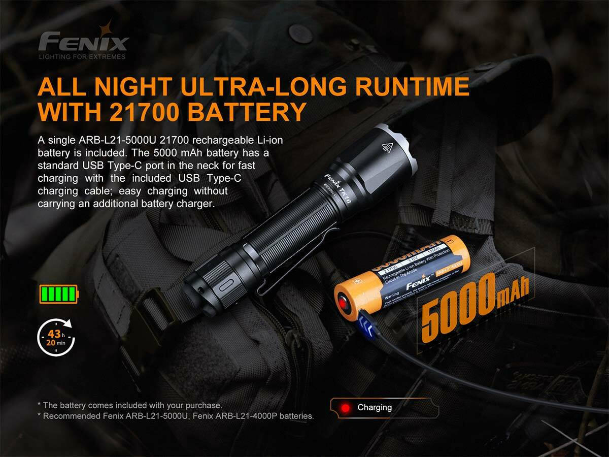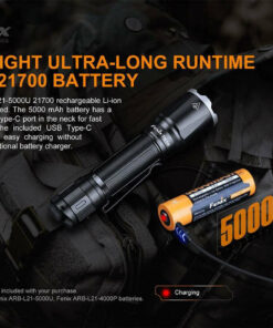 Φακός χειρός LED της Fenix, κατάλληλος για χρήση σε δραστηριότητες όπως κατασκήνωση, πεζοπορία, ποδηλασία, κυνήγι, ψάρεμα ή κατά διάρκεια των εργασιών όπως επισκευή στο σπίτι. Είναι επαναφορτιζόμενος και λειτουργεί με μπαταρία 21700 (δεν συμπεριλαμβάνεται). Έχει ισχυρή ένταση φωτισμού που φτάνει έως 3100lm και μπορεί να φωτίσει έως 380 μέτρα. Το βάρος του αγγίζει τα 112gr και έχει μήκος 14.3cm.