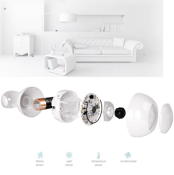 Fibaro Αισθητήρας Κίνησης PET Μπαταρίας Φωτός και Θερμοκρασίας σε Λευκό Χρώμα FGMS-001