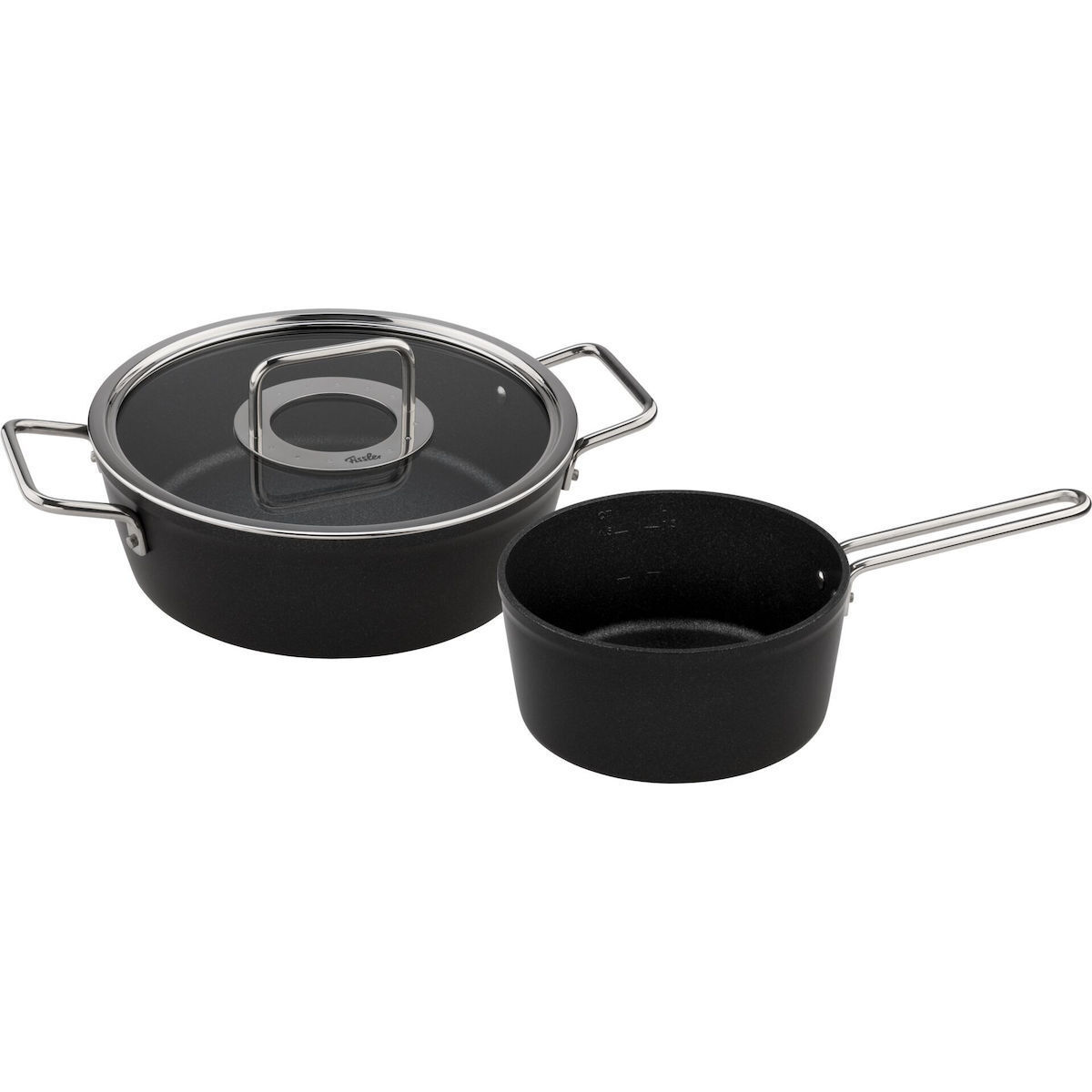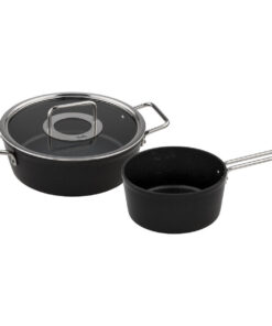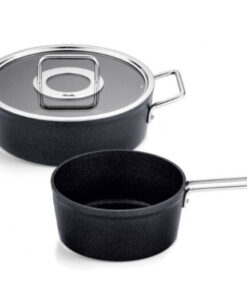 Σετ τηγανιού 24 εκ. και κατσαρόλας 18 εκ. από τη σειρά Adamant με αντιχαρακτική, υδατοδιάφανη επικάλυψη. Κατάλληλο για ποικιλόμορφο τηγάνισμα και μαγείρεμα, ανθεκτικό σε θερμοκρασίες έως 230 ή 180 βαθμούς και συμβατό με όλες τις εστίες, συμπεριλαμβανομένης της επαγωγικής.