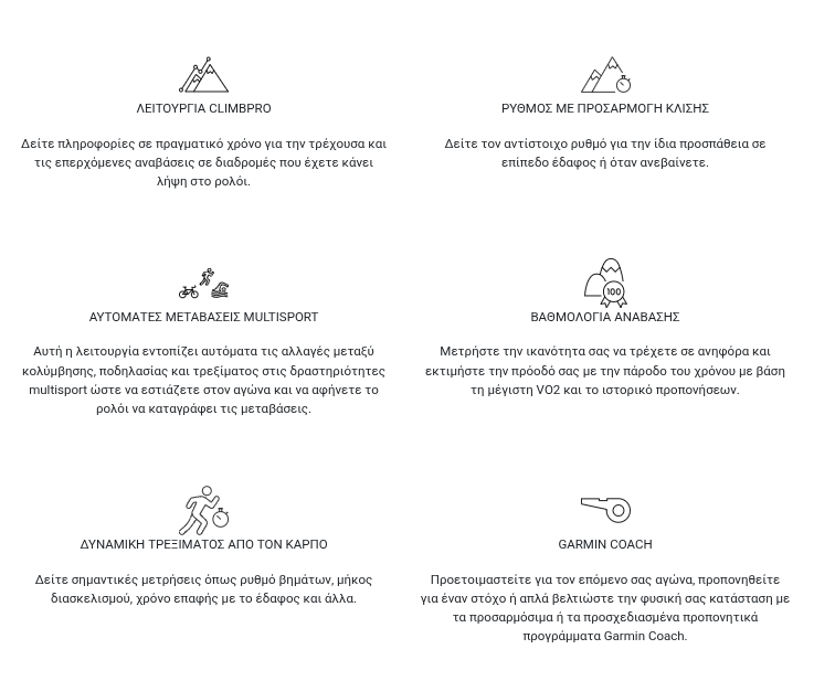 Η λειτουργία δυναμικής πορείας μετ’ επιστροφής σας επιτρέπει να εισάγετε την απόσταση που θέλετε να κάνετε και σας προτείνει πορείες που θα σας επιστρέψουν στην αφετηρία σας εγκαίρως. Μπορείτε ακόμα να βλέπετε ισοϋψείς στους χάρτες TopoActive και να έχετε πρόσβαση σε χάρτες για χιλιάδες γήπεδα γκολφ και χιονοδρομικά κέντρα σε όλο τον κόσμο.
