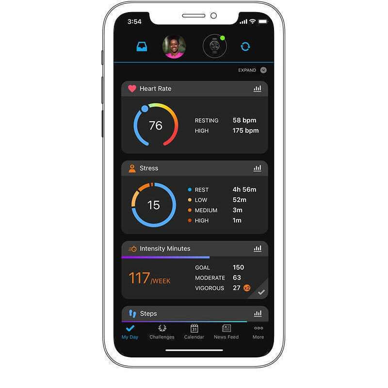 Ενώ είστε έξω το vívomove Trend καταγράφει βήματα, ορόφους που ανεβήκατε, θερμίδες, λεπτά έντασης και άλλα. Μπορείτε ακόμα να συγχρονίσετε τα δεδομένα σε πολλαπλά smartwatch της Garmin.