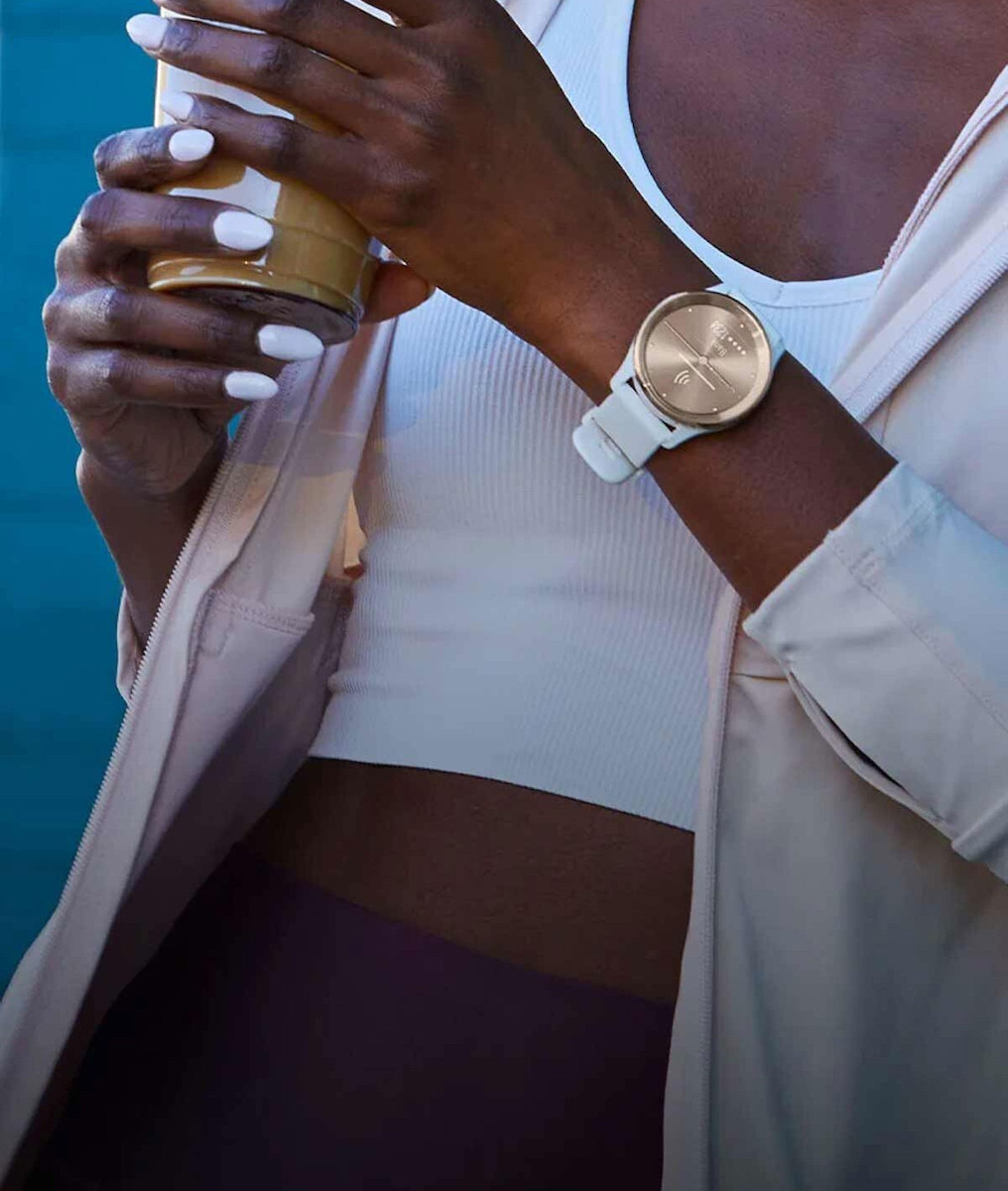 Διαθέσιμο σε ποικιλία χρωμάτων το υβριδικό smartwatch vívomove Trend διαθέτει στεφάνη από ανοξείδωτο ατσάλι, θολωτό φακό από γυαλί και άνετο λουράκι σιλικόνης, καθιστώντας το ιδανικό για την δουλειά, το σαββατοκύριακο – παντού. Είναι επίσης συμβατό με λουράκια 20 mm τύπου quick release.