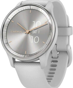 Διαθέσιμο σε ποικιλία χρωμάτων το υβριδικό smartwatch vívomove Trend διαθέτει στεφάνη από ανοξείδωτο ατσάλι, θολωτό φακό από γυαλί και άνετο λουράκι σιλικόνης, καθιστώντας το ιδανικό για την δουλειά, το σαββατοκύριακο – παντού. Είναι επίσης συμβατό με λουράκια 20 mm τύπου quick release.