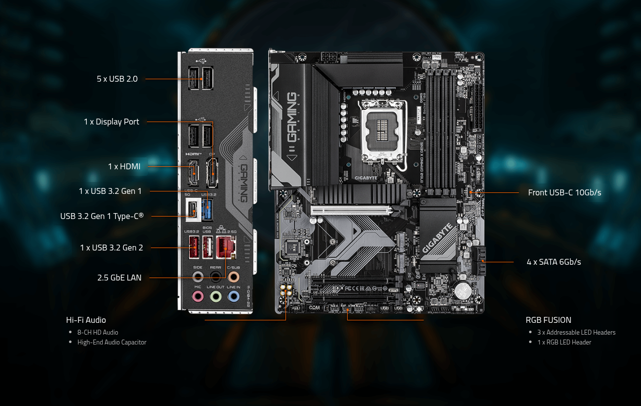 Η μητρική Gigabyte B760 Gaming X GEN5 είναι σχεδιασμένη για gamers και χρήστες που θέλουν ισορροπημένη απόδοση με επεξεργαστές Intel 12ης έως 14ης γενιάς. Προσφέρει σύγχρονη υποστήριξη DDR5, γρήγορη αποθήκευση με PCIe 4.0 M.2 θύρες, και αξιόπιστη σύνδεση δικτύου 2.5 GbE. Ιδανική για gaming setups με καλό συνδυασμό απόδοσης και σταθερότητας, χωρίς περίπλοκες λειτουργίες.