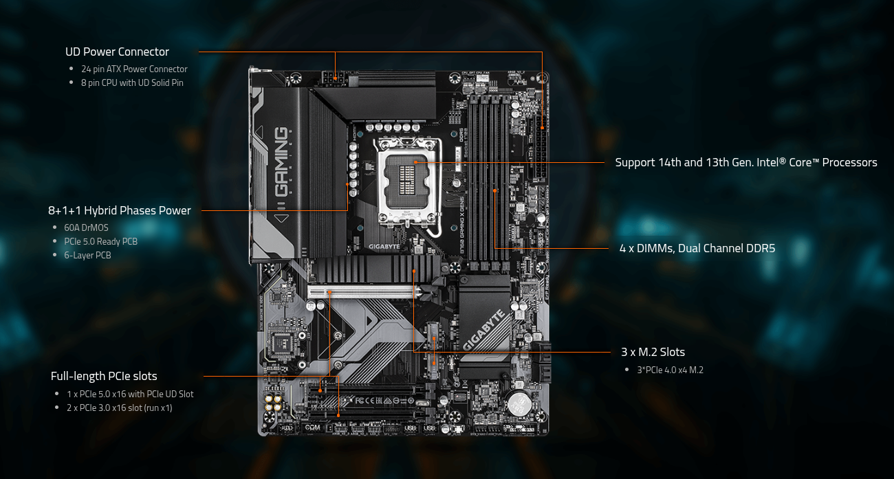 Οι νέες μητρικές GIGABYTE B760 προσφέρουν την πιο αποδοτική λύση για να απολαύσετε βελτιωμένες επιδόσεις PCIe Gen5 στην υπάρχουσα πλατφόρμα. Το PCIe 5.0 διπλασιάζει τον ρυθμό μεταφοράς δεδομένων του PCIe 4.0 από 16 GT/s σε 32 GT/s ανά λωρίδα. Αυτή η σημαντική αύξηση στο εύρος ζώνης ωφελεί ιδιαίτερα τις κάρτες γραφικών υψηλών επιδόσεων, τις συσκευές αποθήκευσης και τους επιταχυντές AI που απαιτούν ταχύτερη μεταφορά δεδομένων.