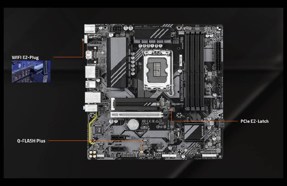 Η Gigabyte B760M DS3H WIFI6E GEN5 (rev. 1.x) απευθύνεται σε χρήστες που θέλουν ένα συμπαγές πλαίσιο (micro‑ATX) με δυνατότητες του μέλλοντος: υποστηρίζει Intel 12ης έως 14ης γενιάς, DDR5 μνήμη, PCIe 5.0, Wi‑Fi 6E, και 2.5G LAN, με ασφαλές και εύκολο overclock μέσω BIOS και έξυπνα εργαλεία Q‑Flash Plus. Κατάλληλη για σύγχρονα gaming builds ή αποδοτικούς σταθμούς εργασίας με καλές συνδέσεις και αξιόπιστη πλατφόρμα.