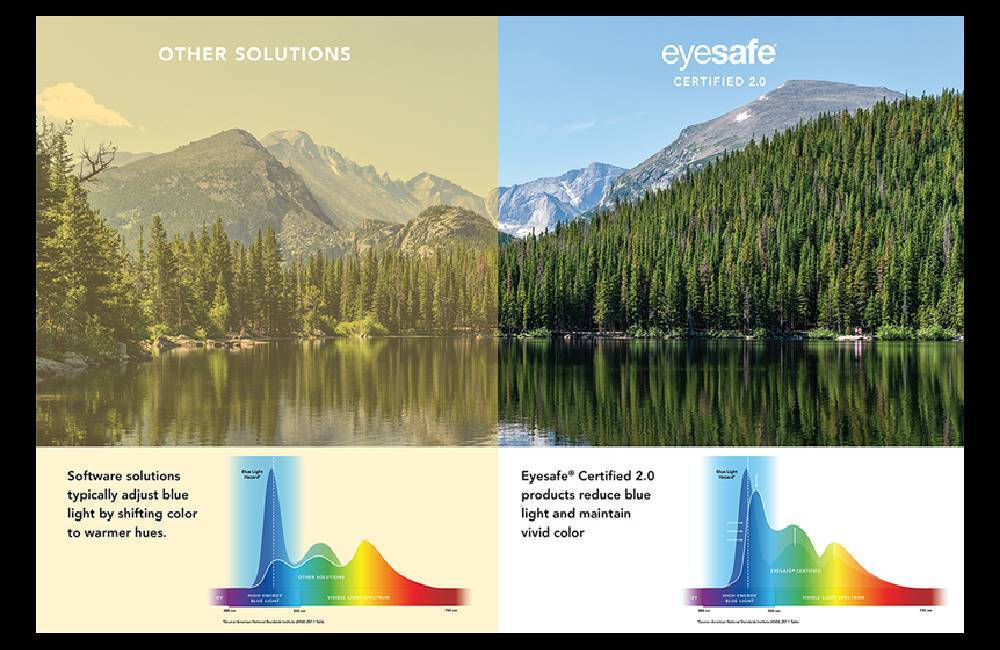 Άλλες λύσεις ρυθμίζουν το μπλε φως μετατοπίζοντας το χρώμα σε θερμότερες αποχρώσεις. Το πιστοποιημένο από Eyesafe® 2.0 μειώνει το μπλε φως υψηλής ενέργειας, διατηρώντας παράλληλα την απόδοση των χρωμάτων.