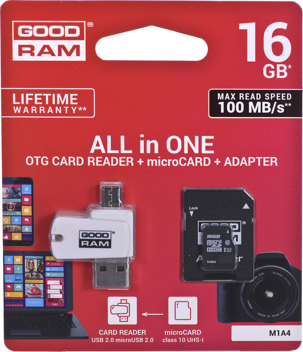 Το σετ αποτελείται από μια κάρτα microSD, έναν προσαρμογέα και έναν αναγνώστη καρτών microSD. Το πιο σημαντικό χαρακτηριστικό αυτού του σετ είναι η λειτουργικότητά του – χάρη στον προσαρμογέα, η κάρτα microSD λειτουργεί ως τυπική κάρτα SD, και χάρη στη μινιατούρα ανάγνωσης, μπορεί να χρησιμοποιηθεί ως πρακτικό μικρό θηκών για υπολογιστή ή smartphone. Η συσκευή μπορεί να χρησιμοποιηθεί ως μέσο αποθήκευσης σε έναν μίνι υπολογιστή Raspberry Pi.
