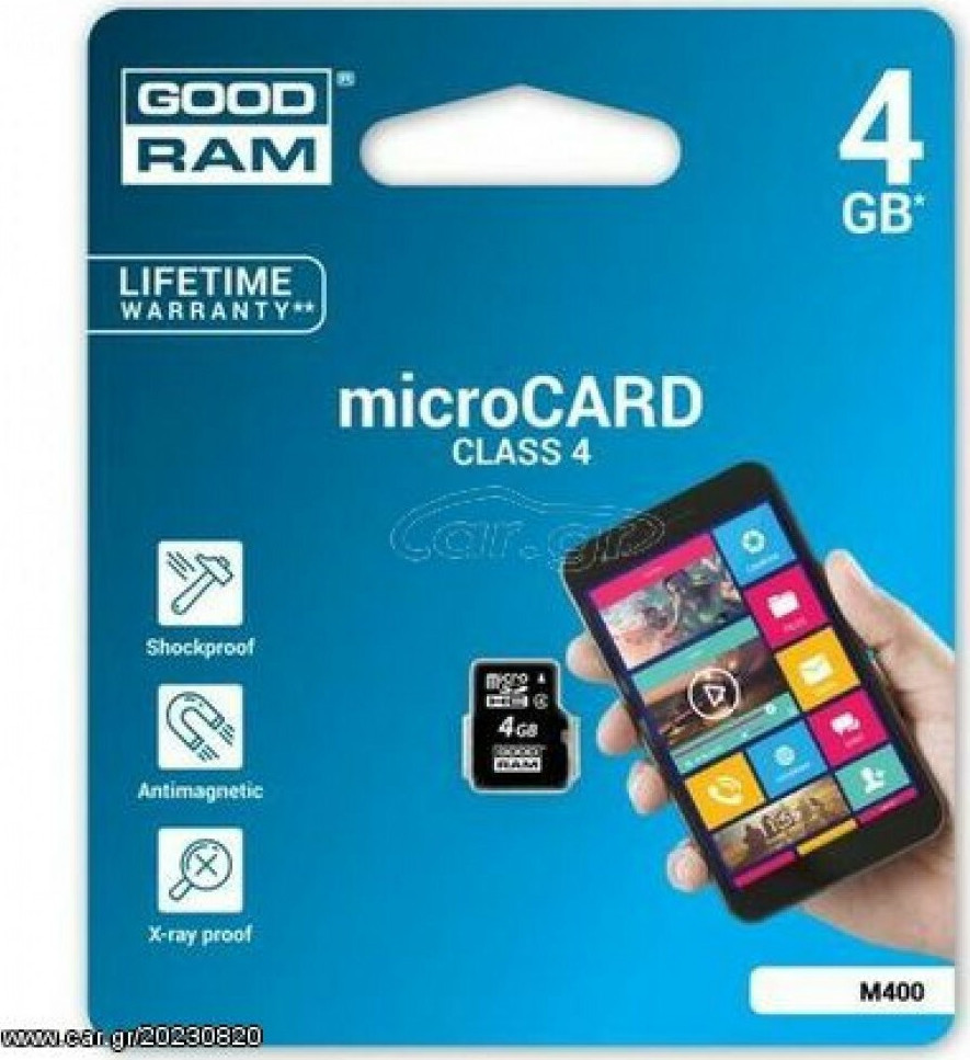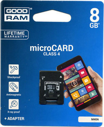 Χωρητικότητα προσαρμοσμένη στις ανάγκες σας. Διατίθενται κάρτες GOODRAM microSD/SDHC της τέταρτης κατηγορίας ταχύτητας σε χωρητικότητες 8, 16 και 32 GB. Η μέγιστη προσφερόμενη χωρητικότητα των 32 GB θα σας επιτρέψει να αποθηκεύσετε έως και 7.600 φωτογραφίες, 480 ώρες μουσικής ή 480 λεπτά ταινιών HD.