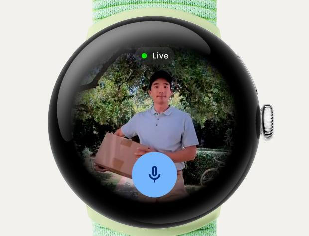 Λάβετε ειδοποιήσεις από την κάμερα Nest Cam ή το κουδούνι Nest Doorbell και, στη συνέχεια, δείτε την τροφοδοσία της κάμερας στο ρολόι σας με την εφαρμογή Google Home.