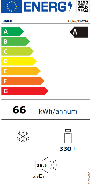 - Ενεργειακή κλάση A με χαμηλή κατανάλωση 66 kWh/έτος.