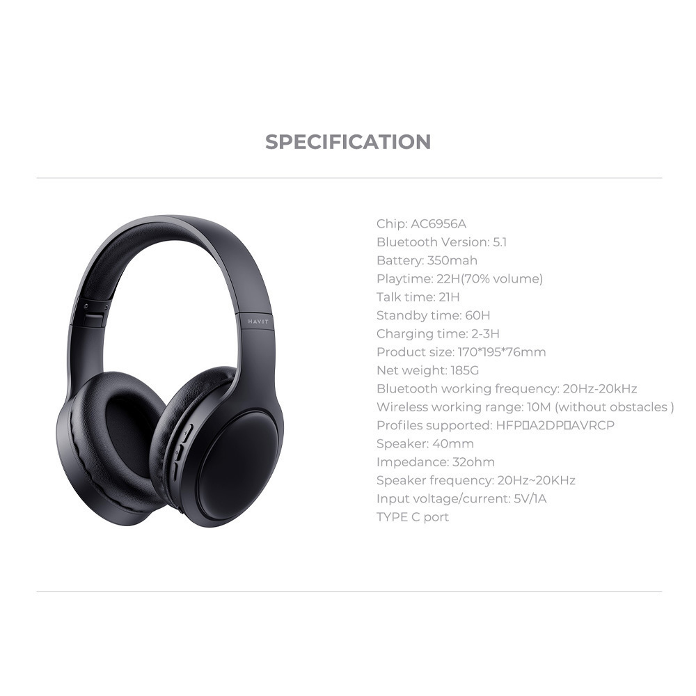 Ασύρματα ακουστικά Havit – H633BT εξαιρετικής ποιότητας με εργονομικό σχεδιασμό που θα καλύψουν τις ανάγκες σας.