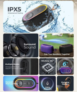 Το Havit SK809BT είναι ιδανικό για εσωτερική και εξωτερική χρήση. Με την τεχνολογία Bluetooth 5.3, παρέχει σταθερή σύνδεση και εξαιρετική ποιότητα ήχου. Το αδιάβροχο σώμα του με πιστοποίηση IPX6 το καθιστά ανθεκτικό σε νερό και ιδανικό για την παραλία ή την πισίνα.