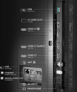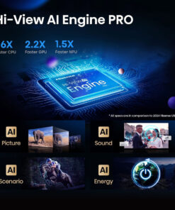 Η τηλεόραση διαθέτει σύστημα ήχου 2.1.2, που σημαίνει ότι έχει δύο κανονικά ηχεία και δύο subwoofers για πιο γεμάτο ήχο, προσφέροντας μια ρεαλιστική ακουστική εμπειρία. Για τη χρήση της, το λειτουργικό σύστημα Vidaa παρέχει εύκολη πλοήγηση και έχει προεγκατεστημένες εφαρμογές όπως Netflix, YouTube και DisneyPlus.