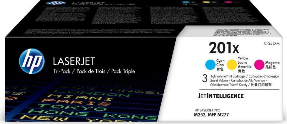- Πακέτο με 3 toner 201X της HP που προσφέρει επαγγελματική εμφάνιση στις εκτυπώσεις σας και είναι ειδικά κατασκευασμένο ώστε να βοηθά στην εξοικονόμηση ενέργειας με απόδοση έως και 6900 σελίδες εκτύπωσης.