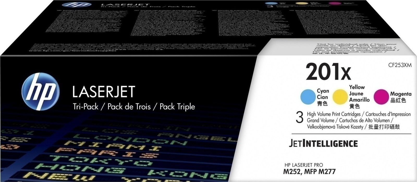 - 3πλή συσκευασία δοχείων κυανού/ματζέντα/κίτρινου γραφίτη LaserJet HP 201X, 2.300 σελίδες ανά δοχείο