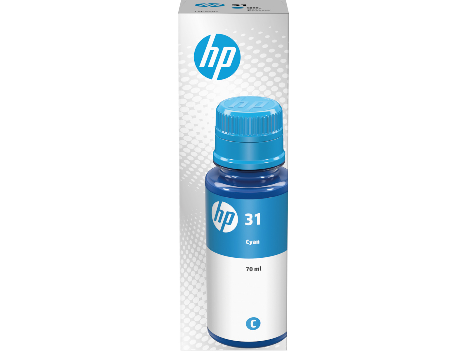 HP 31 70ml Cyan Γνήσιο Δοχείο Μελάνης για Εκτυπωτές HP Smart Tank. Εκτυπώστε χιλιάδες σελίδες με μία απλή αγορά ενός σετ αυθεντικών φιαλών μελανιού υψηλής απόδοσης HP – σε εξαιρετικά χαμηλό κόστος ανά σελίδα.