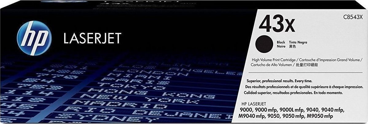 Δοχείο μαύρου γραφίτη HP 43Χ LaserJet. Μέση απόδοση δοχείου 30.000 τυπικές σελίδες.