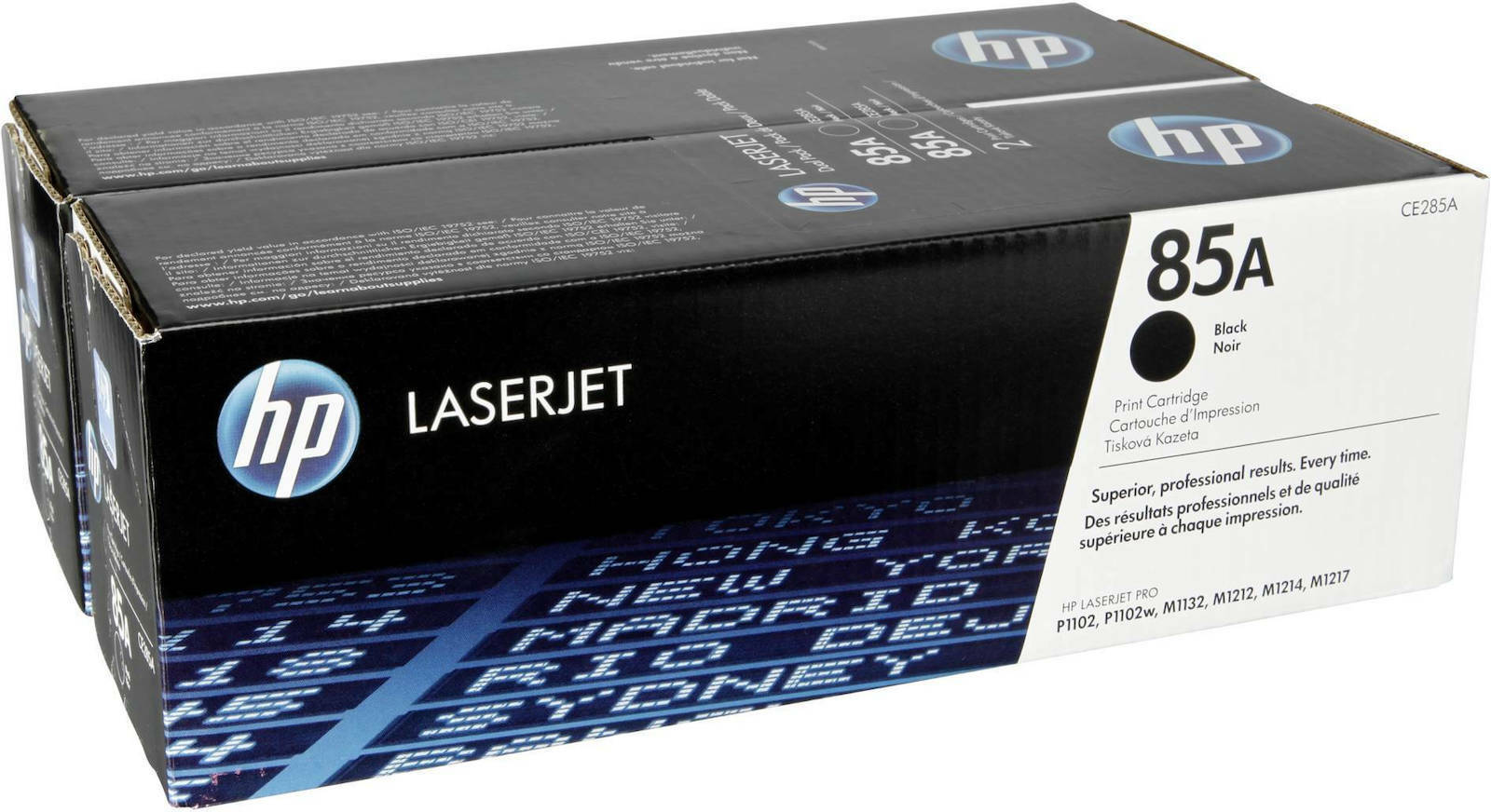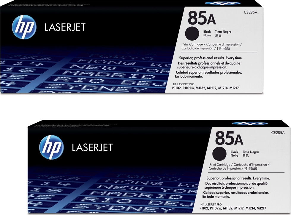 - Διπλή συσκευασία δοχείων μαύρου γραφίτη HP 85A.