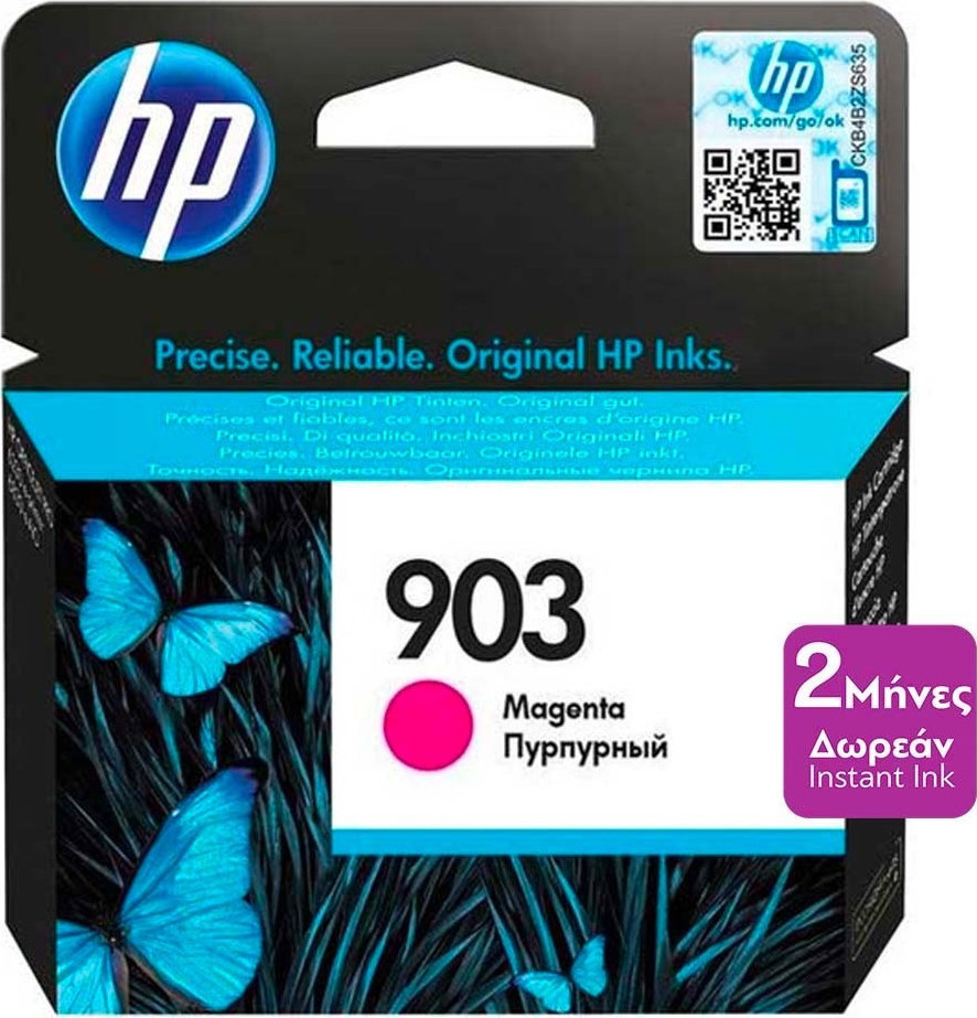 Δοχείο μελανιού HP 903, ματζέντα. Κάντε την επιχείρησή σας να ξεχωρίσει με τα αυθεντικά δοχεία μελάνης HP, που παρέχουν αποτελέσματα στα οποία μπορείτε να βασίζεστε. Ειδικά σχεδιασμένα για τον εκτυπωτή ή τη συσκευή all-in-one της HP, παρέχουν εντυπωσιακές εκτυπώσεις γραφείου και ελαχιστοποιούν τις άχρηστες σελίδες.
