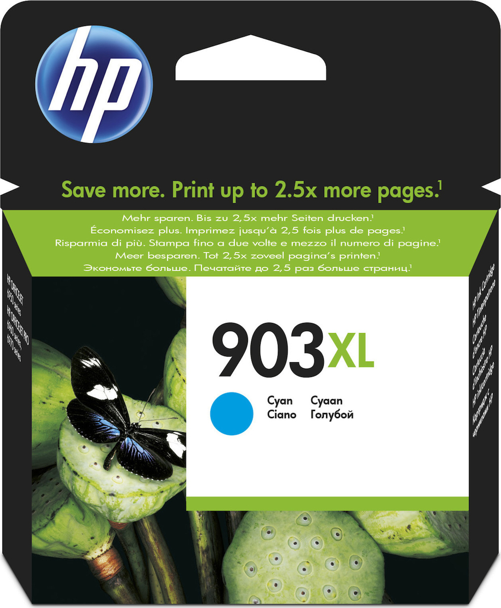 Γνήσιο δοχείο μελάνης κυανού χρώματος HP 903XL, σχεδιασμένο ειδικά για εκτυπωτές της HP. Προσφέρει εντυπωσιακά αποτελέσματα εκτύπωσης με εξαιρετική καθαρότητα και ποιότητα. Η διάρκεια ζωής του φτάνει έως 825 σελίδες εκτύπωσης, εξασφαλίζοντας οικονομικές και παραγωγικές εκτυπώσεις. Τα αυθεντικά δοχεία μελάνης HP 903XL παρέχουν σταθερές επαγγελματικές εκτυπώσεις και είναι συμβατά με διάφορα χαρτιά, όπως τα ColorLok®.