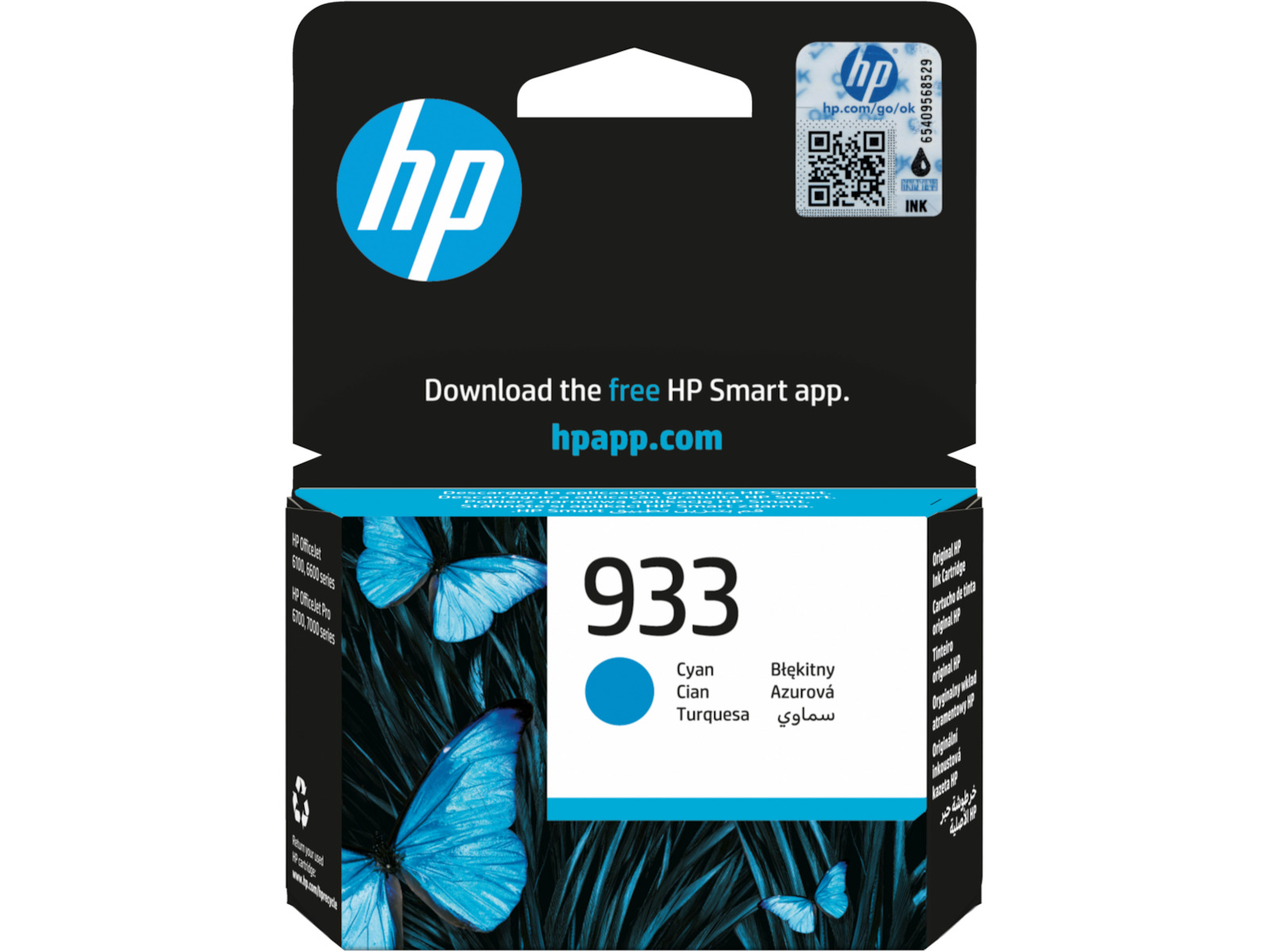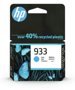 Η κυανή μελάνη HP 933 λειτουργεί με επιλεγμένους εκτυπωτές Officejet και αποδίδει έως 330 σελίδες. Περισσότερο από το 50% των δοχείων μελανιού HP κατασκευάζεται με ανακυκλωμένα πλαστικά.