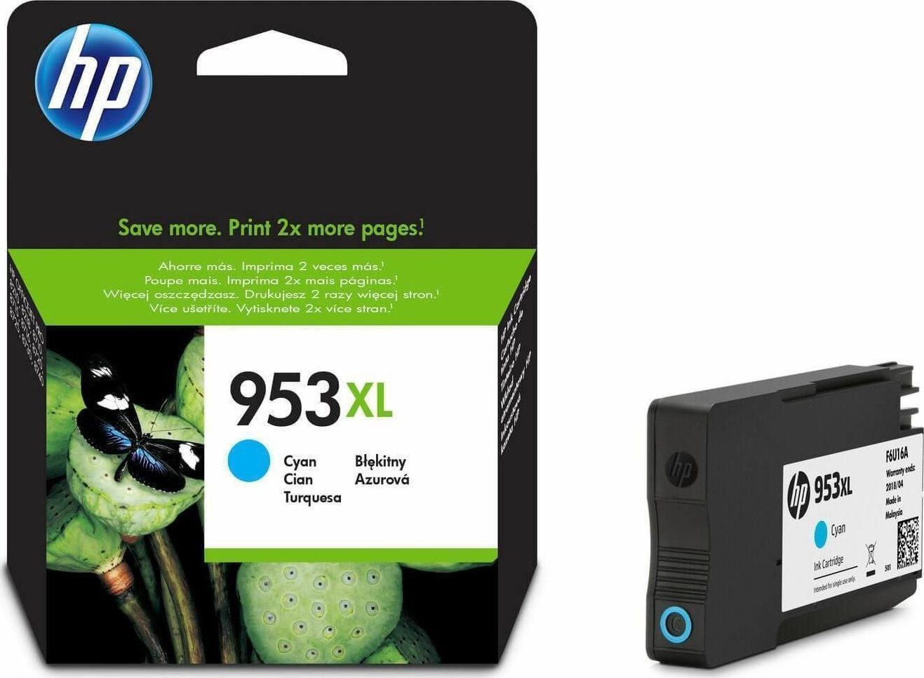 Γνήσια μελάνια εκτυπωτών InkJet HP 953XL υψηλής απόδοσης, κυανό. Εξασφαλίζουν αξιόπιστα αποτελέσματα υψηλής ποιότητας και ταχύτητας σε κάθε εκτύπωση. Τα αυθεντικά δοχεία μελάνης HP προσφέρουν μοναδική αξιοπιστία και εξαιρετικά αποτελέσματα, ιδανικά για επαγγελματικές έγχρωμες εκτυπώσεις που συνδυάζουν ζωντάνια χρωμάτων και έντονο μαύρο κείμενο.