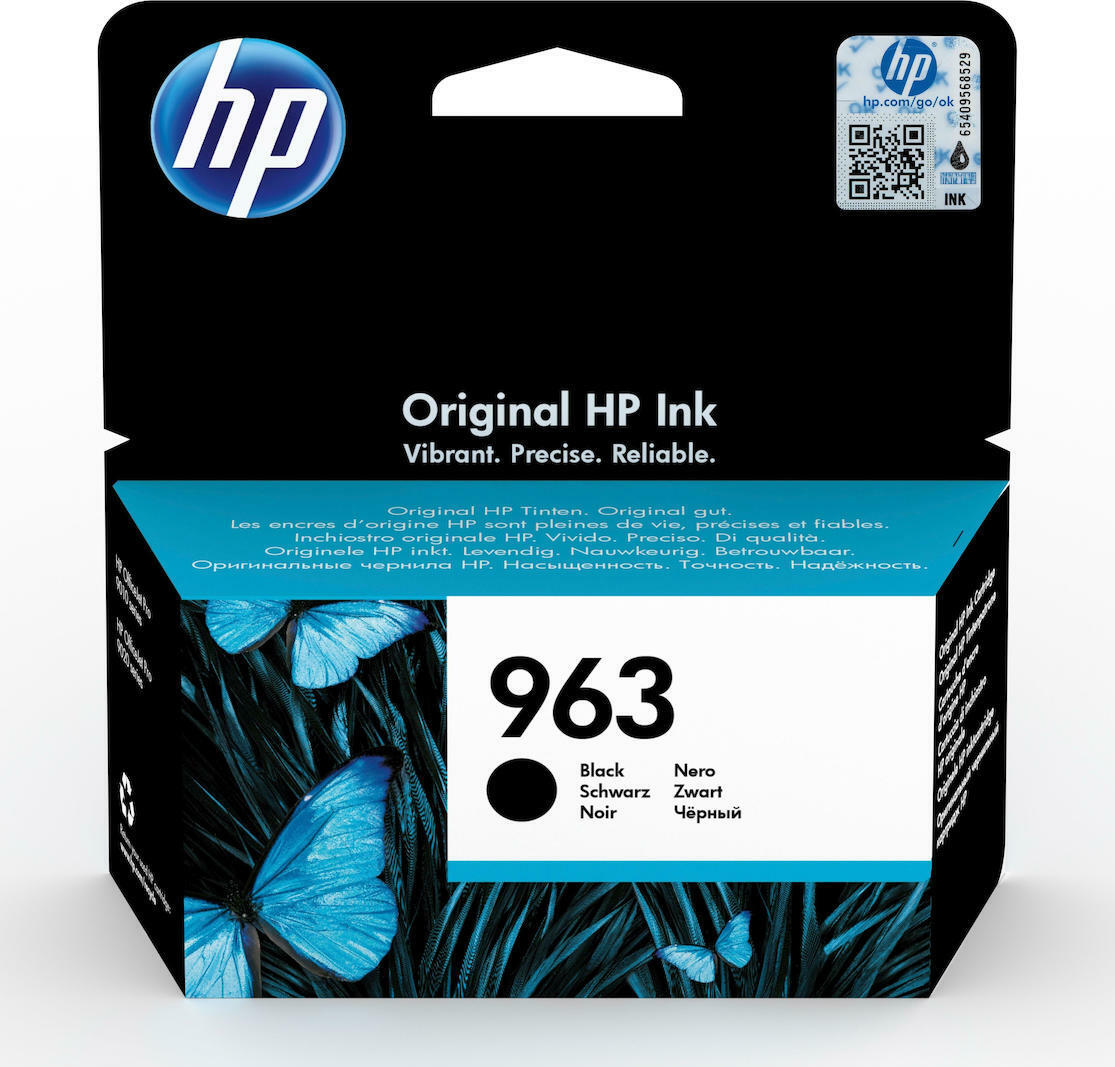 Μαύρο μελάνι τεχνολογίας Inkjet HP 963, χωρητικότητας 24 ml, ιδανικό για εκτυπώσεις που στεγνώνουν γρήγορα και είναι ανθεκτικές στο μουτζούρωμα. Μέγιστος Αριθμός Σελίδων Εκτύπωσης 1.000.