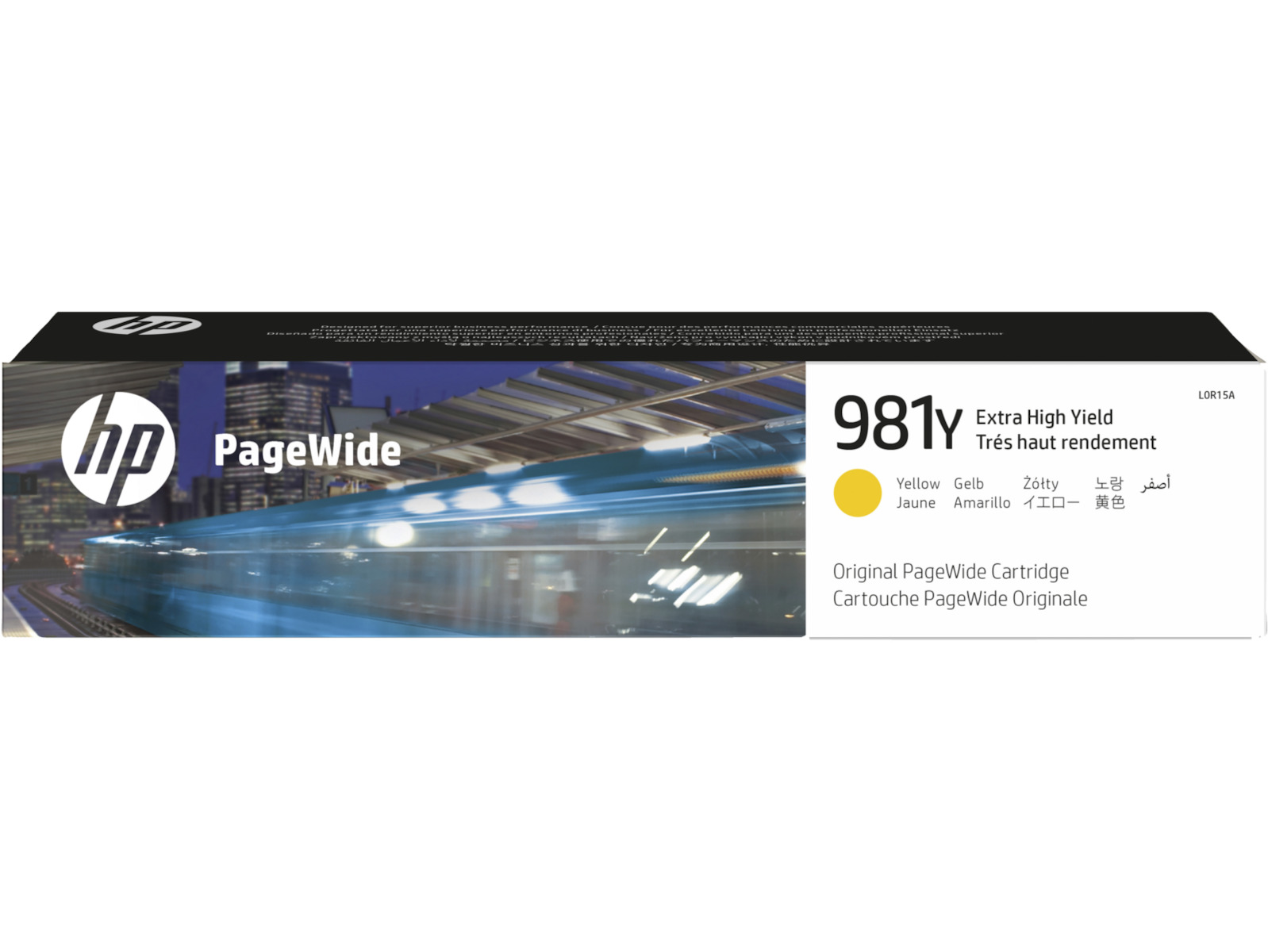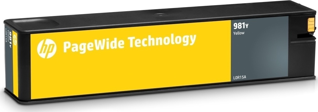 Μονή συσκευασία κίτρινου μελανιού πολύ υψηλής περιεκτικότητας HP 981Y της Hewlett Packard.