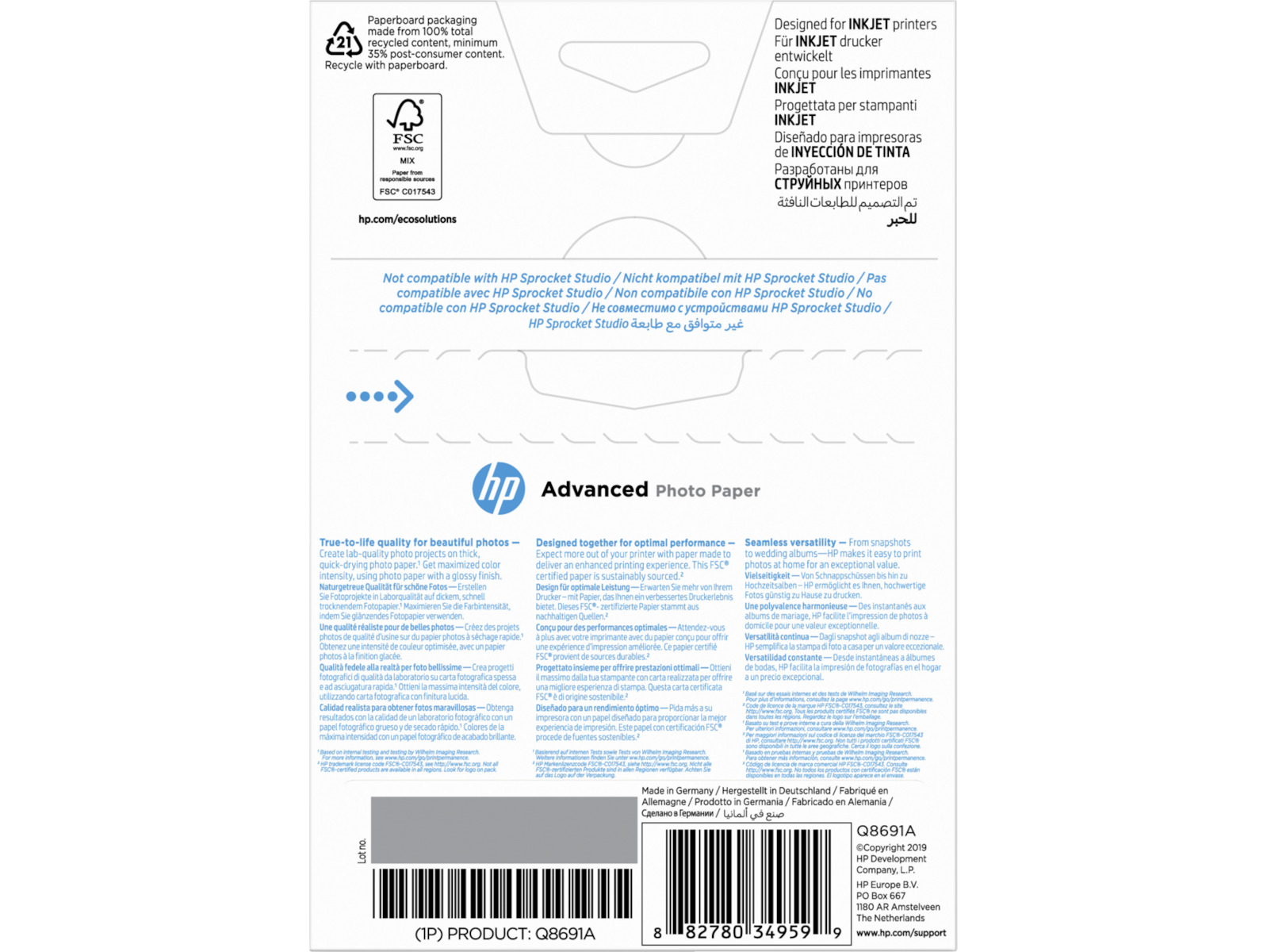 Εκτυπώστε με φωτογραφικά χαρτιά HP με πιστοποίηση FSC®, τα οποία προέρχονται από δάση που υπόκεινται σε βιώσιμη διαχείριση σύμφωνα με τα πρότυπα του Forest Stewardship Council®. Οι φωτογραφίες σας είναι ανακυκλώσιμες ως μικτό χαρτί.