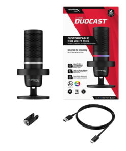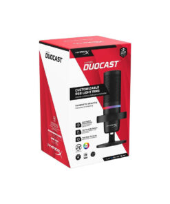 Διαθέτοντας κομψό σχεδιασμό, βάση στήριξης κραδασμών χαμηλού προφίλ και δακτύλιο φωτός RGB, το HyperX DuoCast είναι ένα μικρόφωνο USB με πλήρεις δυνατότητες που έχει σχεδιαστεί για παιχνίδια, εργασία και δημιουργία περιεχομένου. Μοιράζεται τα αγαπημένα χαρακτηριστικά των θαυμαστών των αδελφών του μικροφώνου HyperX, όπως το tap-to-mute και τη ζωντανή ένδειξη σίγασης μικροφώνου LED, αλλά φέρνει επίσης το δικό του μοναδικό, διακριτικό στυλ.