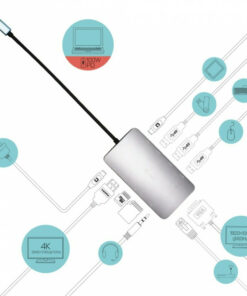 Μεταλλικός σταθμός σύνδεσης USB-C, ικανός να συνδέσει εύκολα έναν εξωτερικό οθόνη ή προβολέα μέσω HDMI ή VGA. Συνδέστε απλώς το laptop ή το tablet σας (χωρίς ανάγκη εγκατάστασης οδηγών) και εκμεταλλευτείτε τα πλεονεκτήματα γρήγορης μεταφοράς δεδομένων USB, σύνδεσης στο Internet μέσω LAN και δυνατότητας σύνδεσης ακουστικών. Ο σταθμός σύνδεσης μπορεί επίσης να τροφοδοτήσει το laptop σας με έως 100 W, επιτρέποντάς σας να φορτίσετε όλα τα laptops και tablets που υποστηρίζουν φόρτιση μέσω USB-C (USB-C Power Delivery). Η βουρτσισμένη αλουμινένια κατασκευή προσφέρει στον σταθμό σύνδεσης ικανοποιητική αντοχή και ανθεκτικότητα ακόμα και κατά τις συχνές μετακινήσεις. Το ενσωματωμένο καλώδιο USB-C είναι επαρκώς μακρύ για άνετη σύνδεση ακόμη και αν η θύρα USB-C βρίσκεται στην επάνω πλευρά του πλαισίου της οθόνης (τυπικό για υβριδικά laptops/tablets).