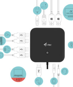 USB-C σταθμός σύνδεσης γραφείου με υποστήριξη έως 2 εξωτερικών οθονών με ανάλυση 4K. Ο σταθμός είναι συμβατός με οποιοδήποτε λάπτοπ εξοπλισμένο με θύρα USB-C ή Thunderbolt 3.