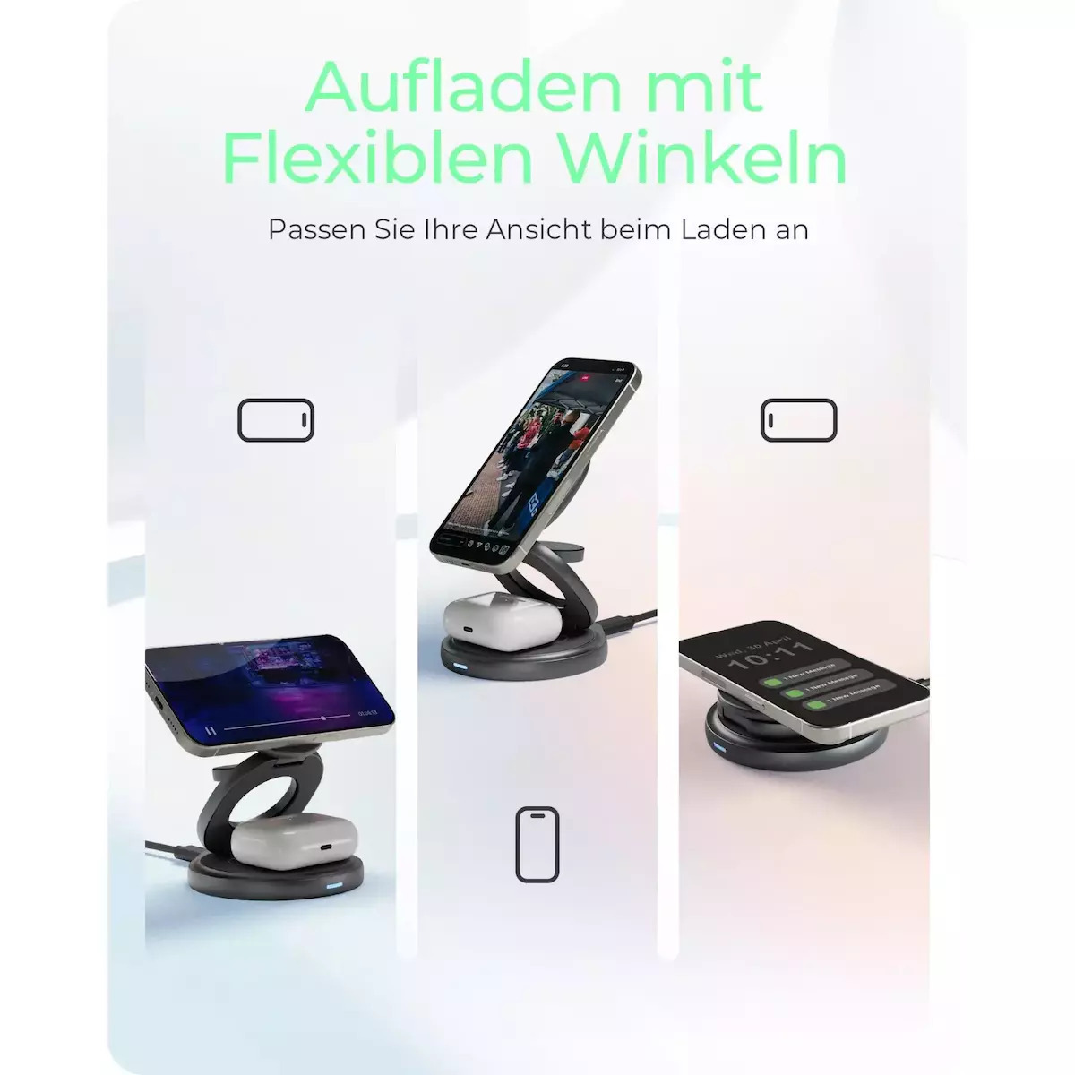 - Φόρτιση με Ευέλικτες Γωνίες: Ιδανική για βιντεοκλήσεις ή ταινίες, ιδανική για κάθετη ή οριζόντια προβολή.