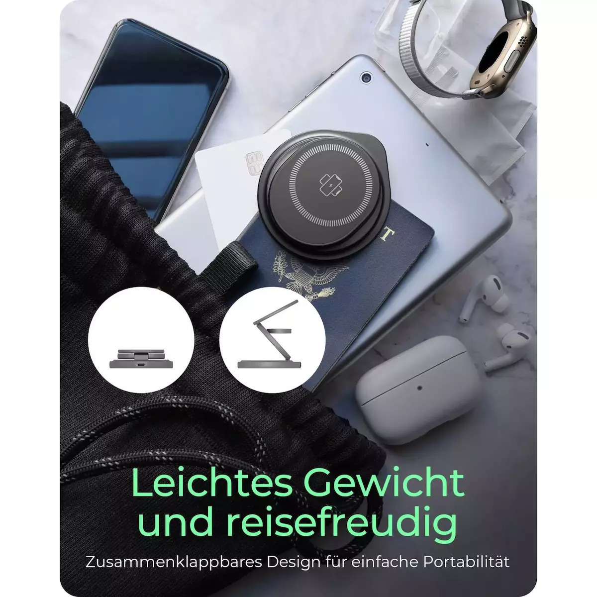 - Φόρτιση για Κινητά, Ακουστικά & Ρολόγια: Υποστηρίζει διάφορες συσκευές όπως iPhone®, Samsung Galaxy® και Google Nexus, καθώς και Apple Watch® και ασύρματα ακουστικά όπως AirPods® και Samsung Galaxy Buds.